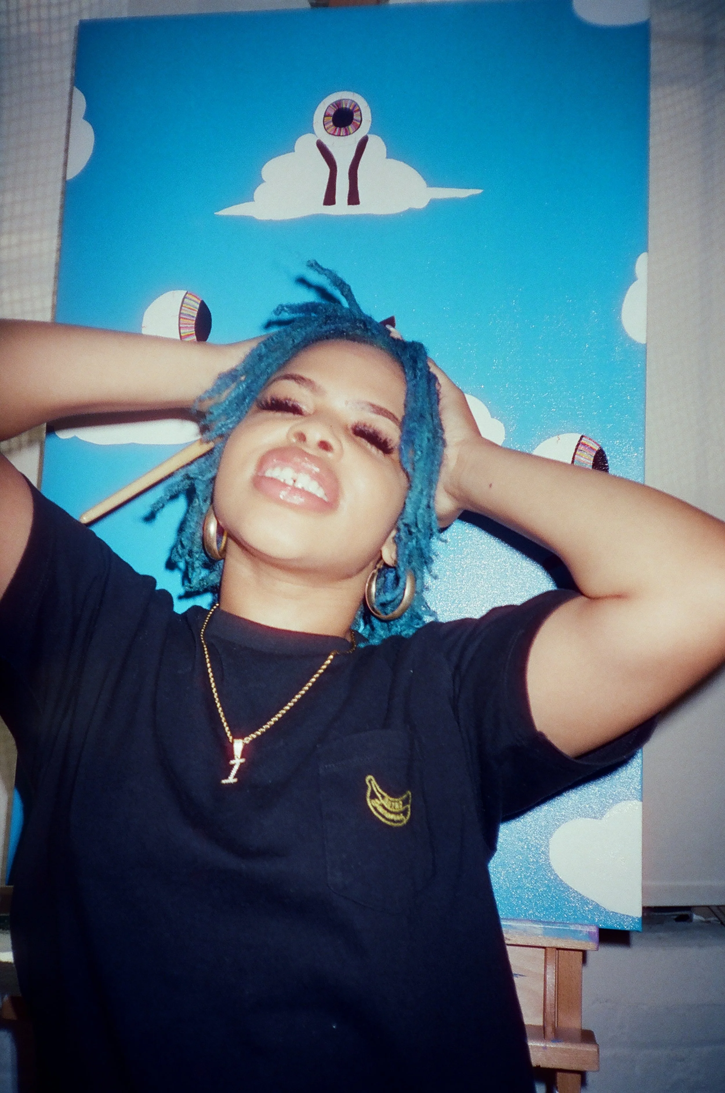 I was involved with so much, as always music therapy aided in this painting and I felt solace in Willow Smiths “Wait a Minute” track. The lyrics to this song displayed similar scenes of myself in the variety of Dimensions I visited in the span of my career and life as an Artist.