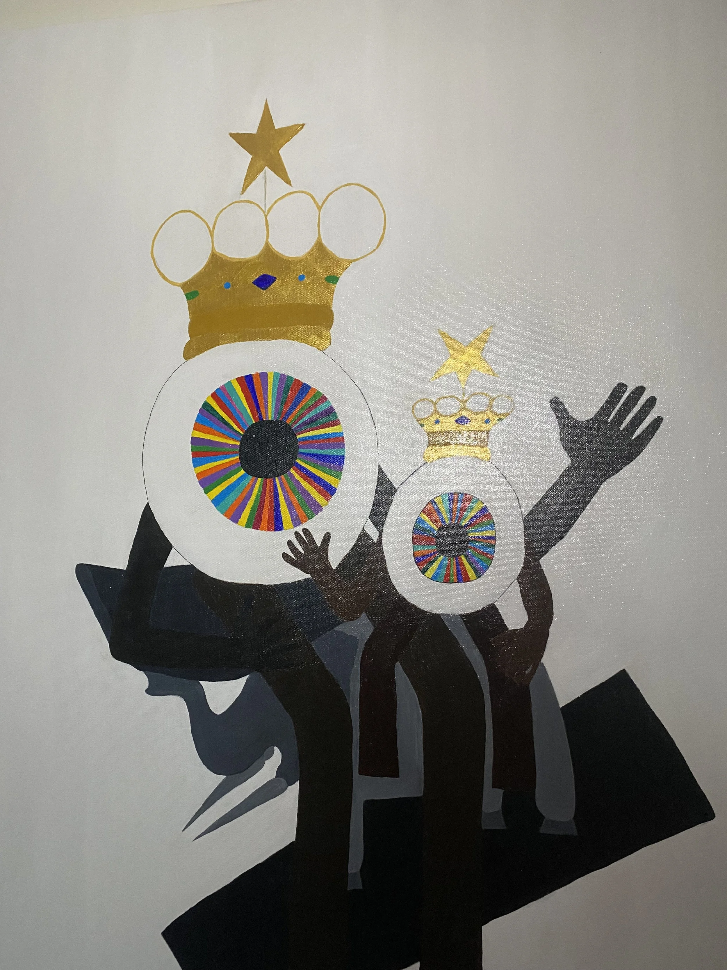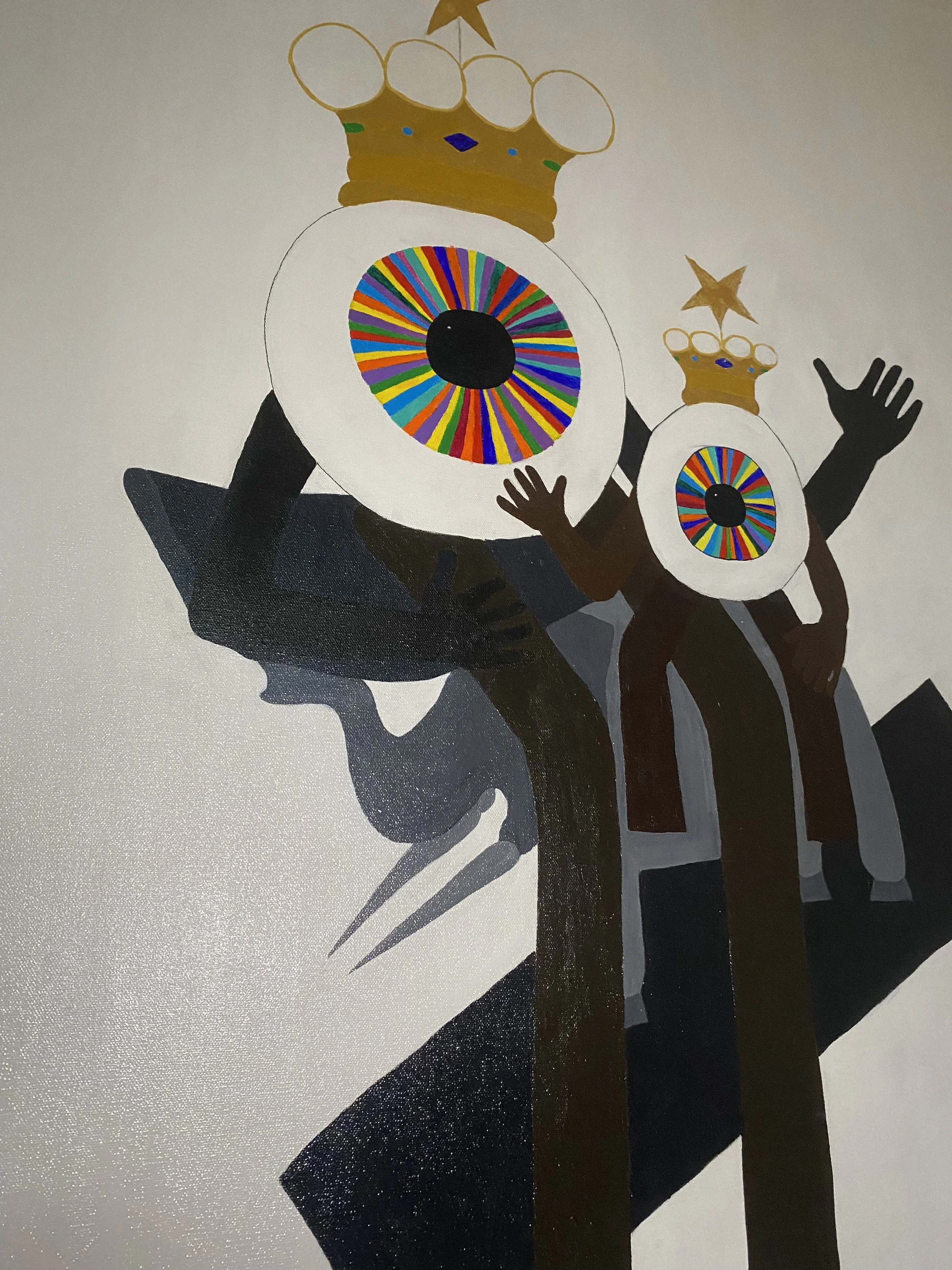In another timeline, I am the virgin with child. This painting is inspired by the strength my son and I possess. I reimagined Larry in the likeness of The Black Madonna; a prominent religious Mother figure taking place on her thrown as the next Matriarch of her family.